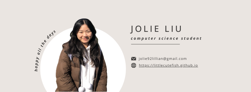 About Hey Everyone π, I'm Jolie Liu π« Iβm a master degree student in NTUSTπ± Iβm currently learning cybersecurity, diffusion model, gen AIπ« How to reach me: jolie92lillian@gmail.comπ From Taiwan Connect with me Skills Programming Languages Frontend Development Databases Software Application and Tools