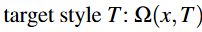 Use a style transfer model (Ω) to convert each artwork (x) into the target style (T).
