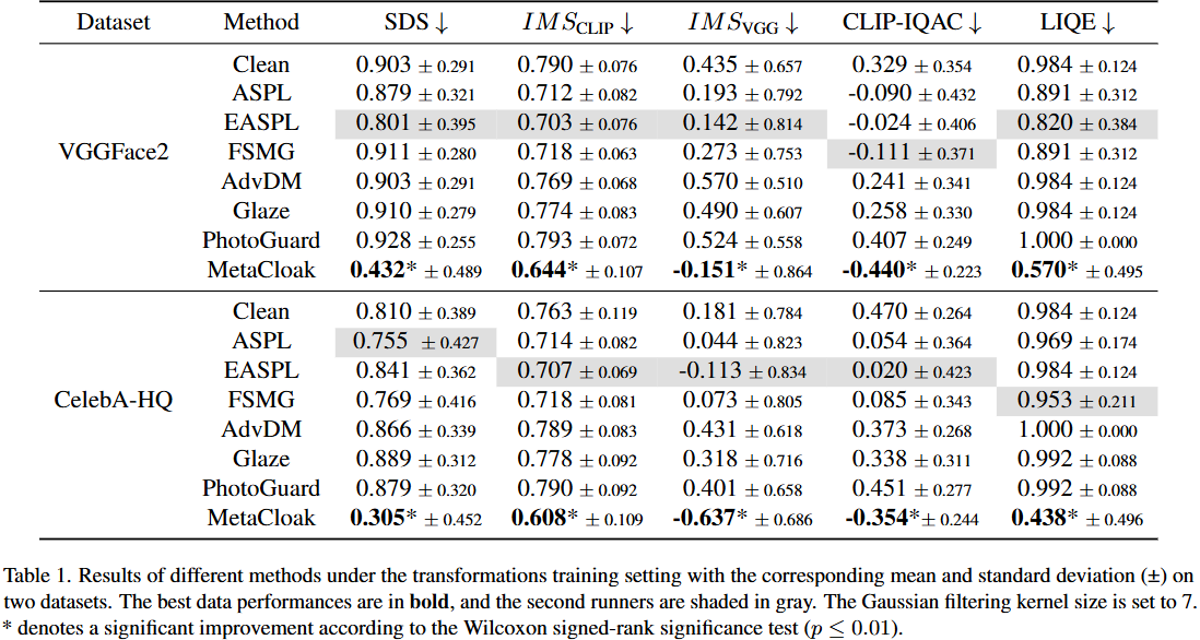 - MetaCloak enhances image resistance to transformations (flipping, cropping, compression) by using surrogate diffusion models to craft transferable perturbations and a denoising-error maximization loss for better robustness.