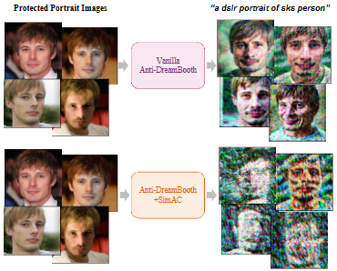 Comparison between Anti-DreamBooth before and after adding SimAC