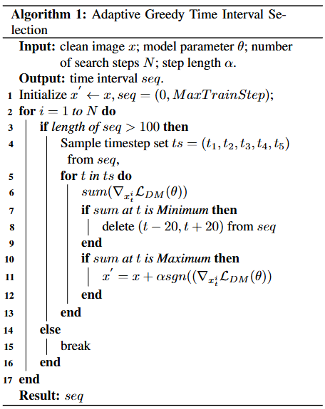 - 較低的 timestep 對對抗性噪聲的貢獻更大 → 提出了適應性貪婪搜索方法,優化時間步驟並整合到現有反定制方法中。