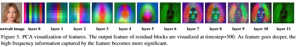 - 當 t∈[700,800] 時,重建圖像與輸入圖像之間的低頻成分佔據主導地位。