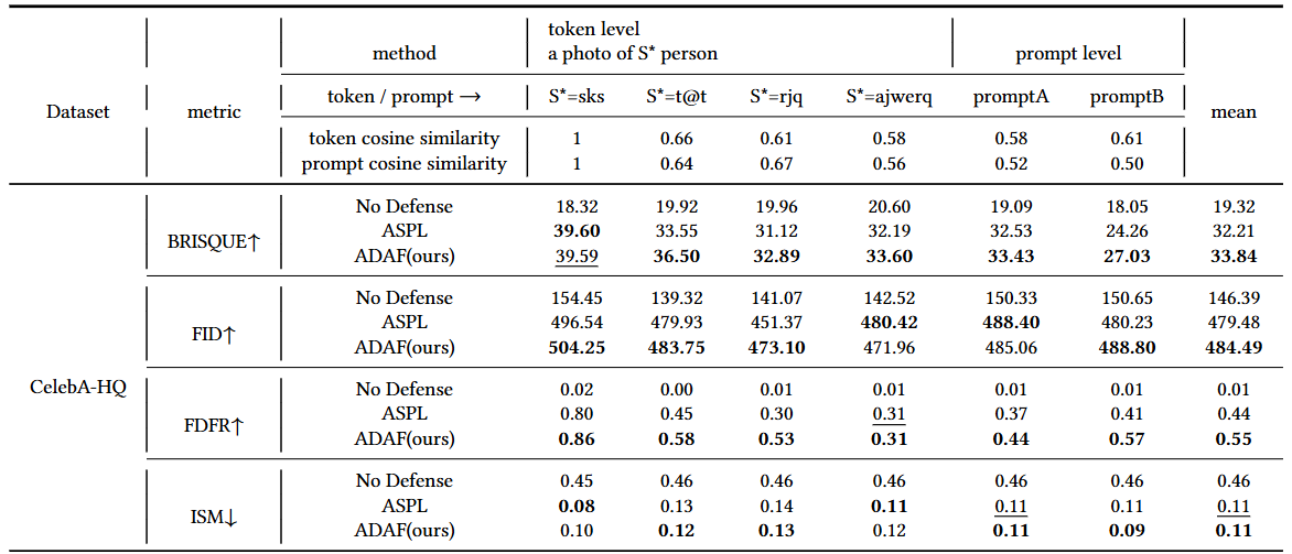 Token Level prompts: “a photo of ( S* )” where ( S* \in { sks, t@t, rjq, ajwerq } )