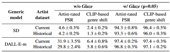 Glaze has a high protection success rate.