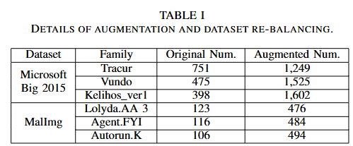 - Imbalanced or long-tailed distribution among various malware families.